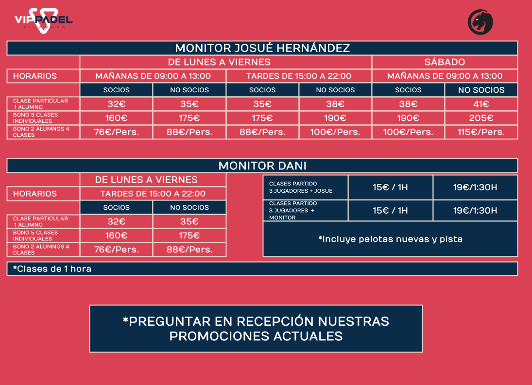 TARIFA PADEL ACADEMY MENORS JOSUÉ HERNANDEZ